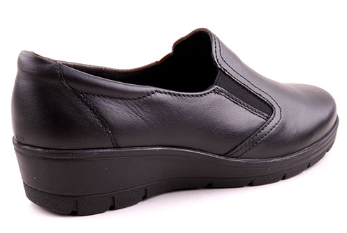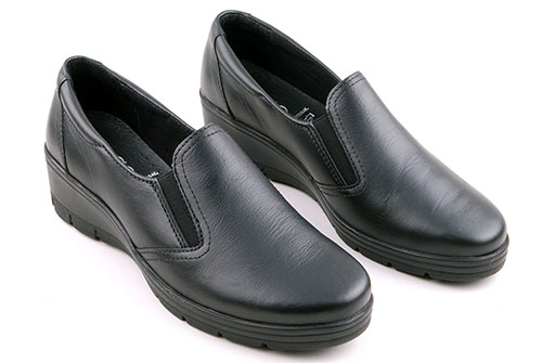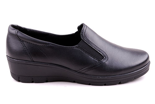 Klassiska och bekväma damskor i mjukt skinn för den som vill vara chic och samtidigt vill ha komfort. Skon har dessutom ett elastiskt band som skapar bättre passform. Passar de flesta normalt breda fötter. Stabil kilklack som är 40 mm hög. Storlek 36