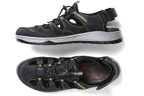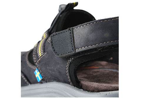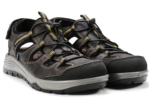 Stabil och robust sandal med löstagbar innersula. Bekväm sandal i skinn med öppna ventiler på ovansidan som ger maximal andningsförmåga. Passformen regleras enkelt med kardborrknäppning bak och ett elastiskt skosnöre med lås framtill gör att du slipper knyta skorna varje gång.
