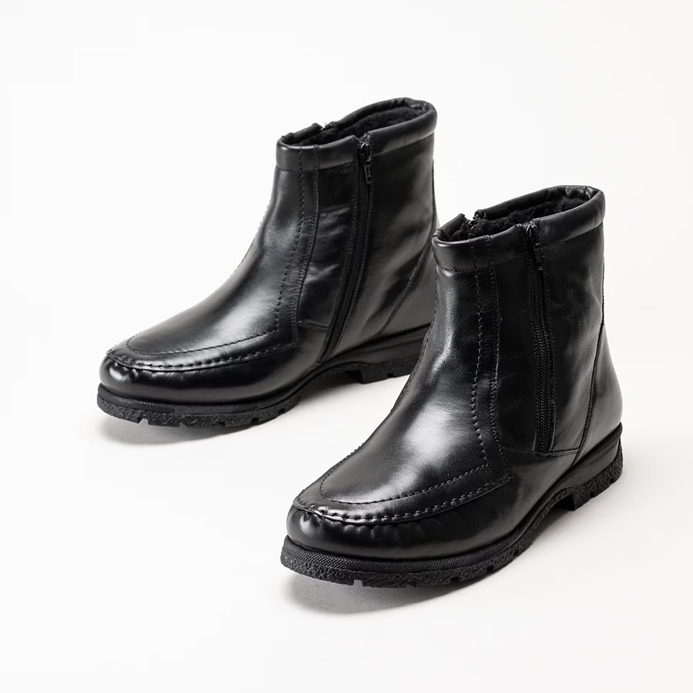 Mjuk och varm vinterboot i skinn med rymlig passform och dragkedjor – för bekväm vardagsanvändning hela vintern.