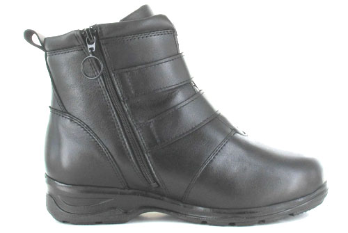 Finsk kvalité när den är som bäst. Fotriktiga damkängor med både kardborreremmar och blixtlås. En stabil vinterkänga till den som behöver extra utrymme för sina ömma fötter. Det är enkelt att ta av och på tack vare den smidiga kardborreknäppningen och breda passform. Uttagbar innersula gör att skorna passar till egna inlägg.